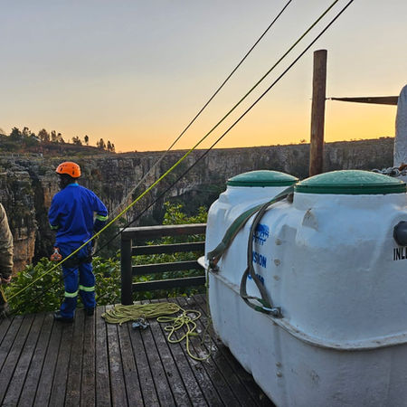 WaterBear Technologies is proud to announce the successful installation of a precision-engineered ZF 450 wastewater treatment plant (1 500 L/day) at the Graskop Gorge Lift Company in Mpumalanga. The compact system, discreetly positioned below the George Bar toilets about 40–50 m down, was installed and commissioned in just two days now operating efficiently at one of the province’s top tourist attractions.